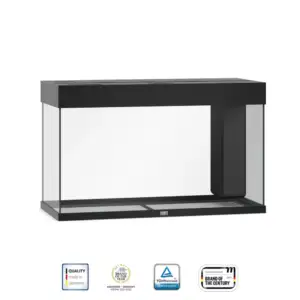 O acabamento cuidadoso da Alemanha, os materiais de alta qualidade e a tecnologia perfeitamente coordenada garantem a máxima qualidade e segurança e, assim, garantem a longevidade do RIO 125 LED. A moderna tecnologia de tubos de iluminação LED MultiLux da JUWEL oferece-lhe uma iluminação brilhante e um excelente crescimento das plantas. Os tubos LED intercambiáveis de 11 watts DAY e NATURE geram um espectro de luz ideal com economia de energia simultânea de até 50% em comparação com os tubos T5. O sistema de iluminação LED MultiLux do RIO 125 LED permite-lhe trabalhar confortavelmente no aquário mesmo quando a iluminação está ligada. A unidade de luz soldada por ultrassom é 100% à prova d’água e atende aos altos padrões de segurança europeus. Para uma filtragem ideal, o RIO 125 LED está equipado com um potente Bioflow M. Este filtro interno combina eficácia com segurança e forma o coração de um aquário JUWEL. Segue o princípio “A água fica no aquário” e, portanto, representa a maneira mais segura de filtrar um aquário. O Bioflow M está equipado com cinco meios filtrantes potentes e uma bomba de circulação Eccoflow 500 silenciosa e potente. O aquecedor JUWEL de 100 watts, que está perfeitamente integrado no ciclo da água do sistema de filtro Bioflow M, garante a temperatura certa no LED RIO 125. Graças ao uso de contatos de prata de alta qualidade e vidro borossilicato resistente a impactos, o aquecedor ajustável JUWEL atende às mais altas exigências em termos de função e segurança e é, obviamente, certificado pela TÜV / GS. Com o armário baixo disponível opcionalmente, seu aquário fica seguro em solo firme. Os dois são a dupla perfeita porque o armário baixo está disponível nas cores do aquário. A construção infalível e o generoso espaço de arrumação, por exemplo, para acessórios, também não deixam nada a desejar. Na verdade, você só tem uma coisa a fazer; Decida a sua cor favorita e aguarde ansiosamente o seu novo acessório de casa encantador todos os dias! Detalhes do aquário: Modelo RIO 125 LED