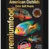 American Cichlids Color Soft Pearls – O único alimento para todos os ciclídeos – Conteúdo: Proteína bruta 44%, gordura bruta 13,6%, fibra bruta 1%, cinza bruta 6%. Aditivos por kg: Vitaminas: Vitamina D3 (671) 1000 I.E. Micronutrientes: sulfato ferroso mono-hidratado (E1) 45mg, iodato de cálcio anidro (E2) 2mg, sulfato de cobre penta-hidratado (E4) 6mg, mono-hidrato de sulfato de manganês (E5) 17mg, mono-hidrato de sulfato de zinco (E6) 112mg. Antioxidantes: 76mg. Ingredientes: Peixe e peixe subprodutos, cereais, legumes, óleos e gorduras, leveduras, 1400 mg xantinas. Conselhos de alimentação: A comida pode ser alimentada sozinha ou em combinação com outros alimentos. Alimente a comida diariamente em pequenas porções. Data de expiração, ver data de validade inferior, ver fundo