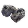 Pedra cinza-acastanhada, fendas irregulares e sulco.