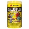 D-ALLIO PLUS Alimento com múltiplos ingredientes em forma de flocos, com alho. Alimento em forma de flocos, com múltiplos ingredientes e alho (min. 30%) adicionado, deslataado a alimentação diária dos Discus e outros peixes com grandes exigências nutricionais, incluindo os peixes do mar. Nos flocos D-Allio Plus são aproveitadas, as já a muito conhecidas, valiosas propriedades do alho (Allium sativum L.). Este aditivo natural fortalece o organismo dos peixes e apoia o processo digestivo. O alto valor nutritivo deste alimento, as vitaminas e microelementos otimamente selecionados e as propriedades naturais do alho faz com que, seje um alimento insubstituível durante o processo de tratamento clínico, reconvalescência dos peixes e a sua adaptação em novas condições.